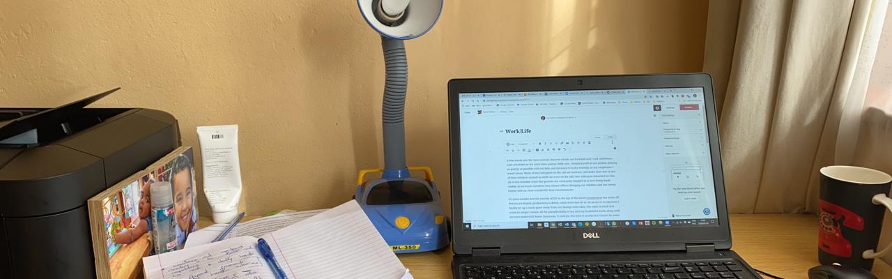 I know I am not alone in this. I have had endless conversations with colleagues and friends about the new tightrope we are walking daily. My social media feeds are filled with think-piece after think-piece on the shattered illusion of the separate places of work and parenting in our lives. It’s as if, in forcing us to shelter, work, love, parent, be in one place, this pandemic had brought us face-to-face with the wholeness of our humanity. No-one is ever just one thing at once. When I am at home, I am at once a wife, a mother, a writer, and a part of a vibrant professional community. I might not be performing each identity at once, but I carry all of them. When I am at work, I don’t cease to be consumed with the particularities of my children’s lives. For so long, people – especially women – have had to pretend away at least 60% of whom we are for the sake of our professions and our job security. The gift of COVID-19 is that it has stripped away the props we rely on in this pretense: the office, the meetings, the work trips. Without these, we can no longer pretend away crucial parts of our identities.